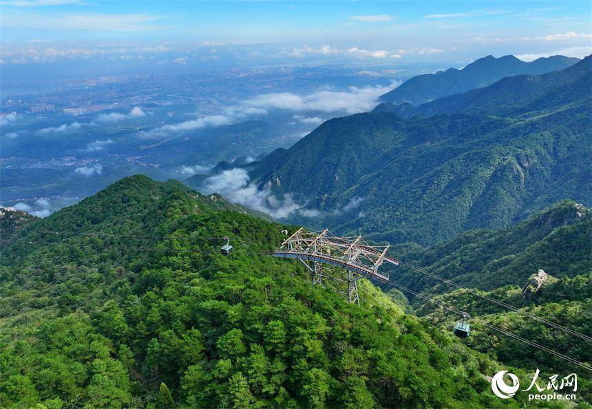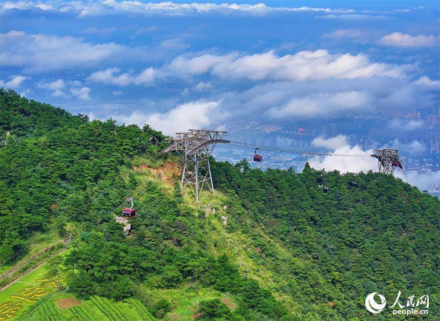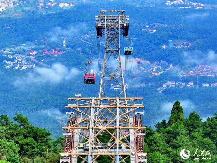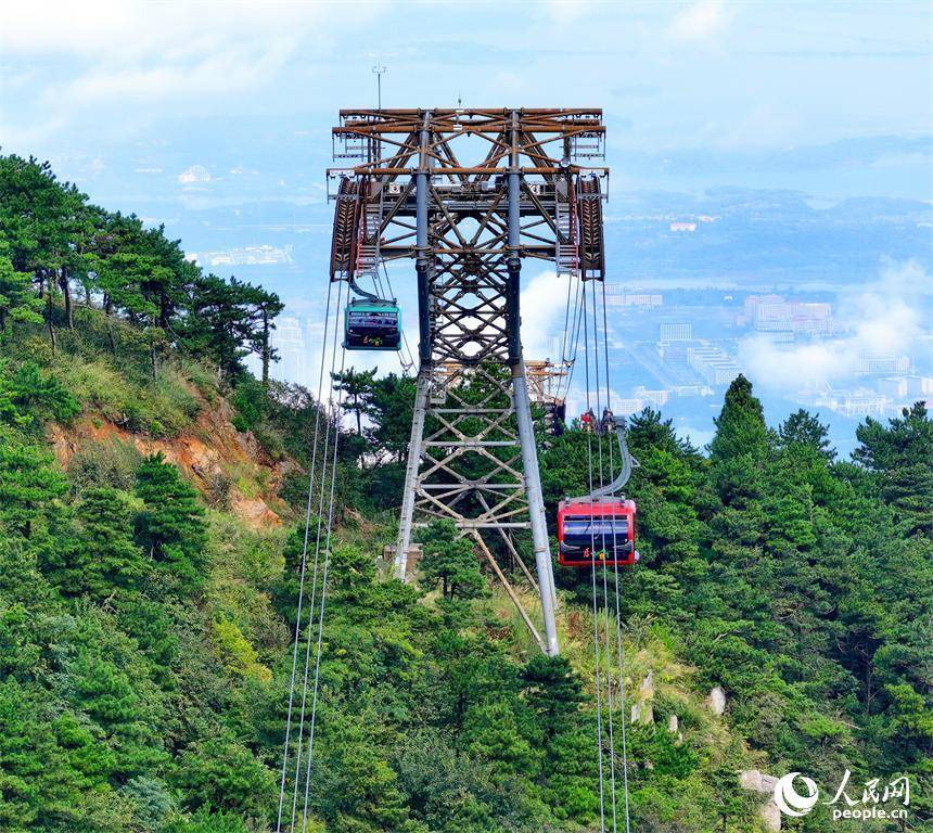 游客乘坐交通索道缆车观赏庐山秋日美景。人民网 朱海鹏摄人民网庐山10月8日电 (朱海鹏)近日,江西省庐山市,游客乘坐交通索道缆车观赏庐山秋日美景。