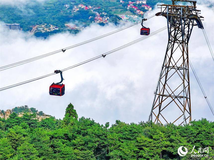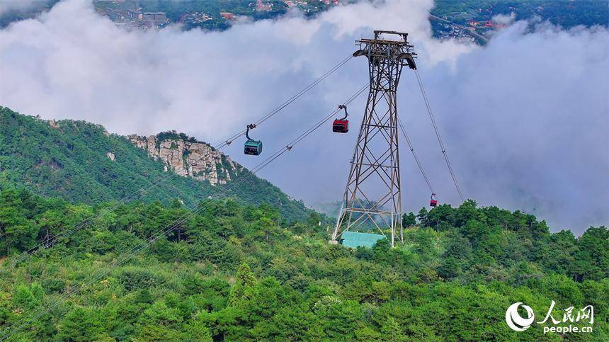 游客乘坐交通索道缆车观赏庐山秋日美景。人民网 朱海鹏摄